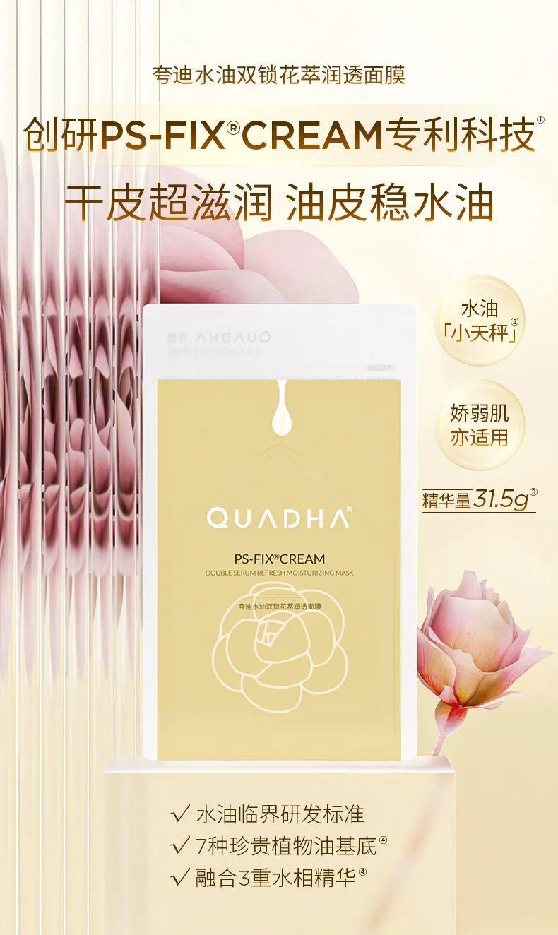 近日,夸迪上新山茶花安瓶精華面膜,創(chuàng)新水包油精粹,讓肌膚水油控制在8:1黃金比例,更強(qiáng)滲透率、更高保濕率,做到以水補(bǔ)水、以油鎖水。
