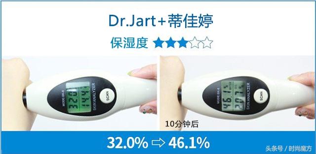 測試結果顯示,Dr.Jart+蒂佳婷使用卸妝水潔面后肌膚水分增加了14.1%。