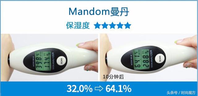測試結果顯示,Mandom曼丹使用卸妝水潔面后肌膚水分增加了32.1%。