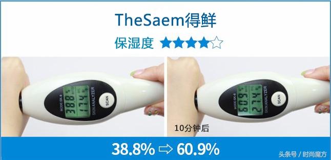 測試結果顯示,TheSaem得鮮使用卸妝水潔面后肌膚水分增加了22.1%。