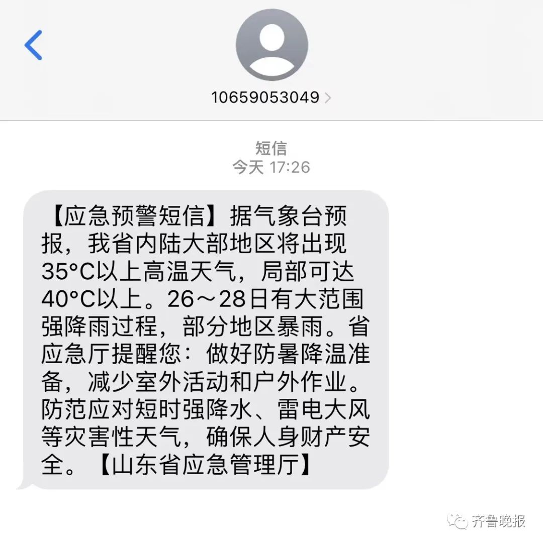 山東省應(yīng)急廳也發(fā)布短信提醒——