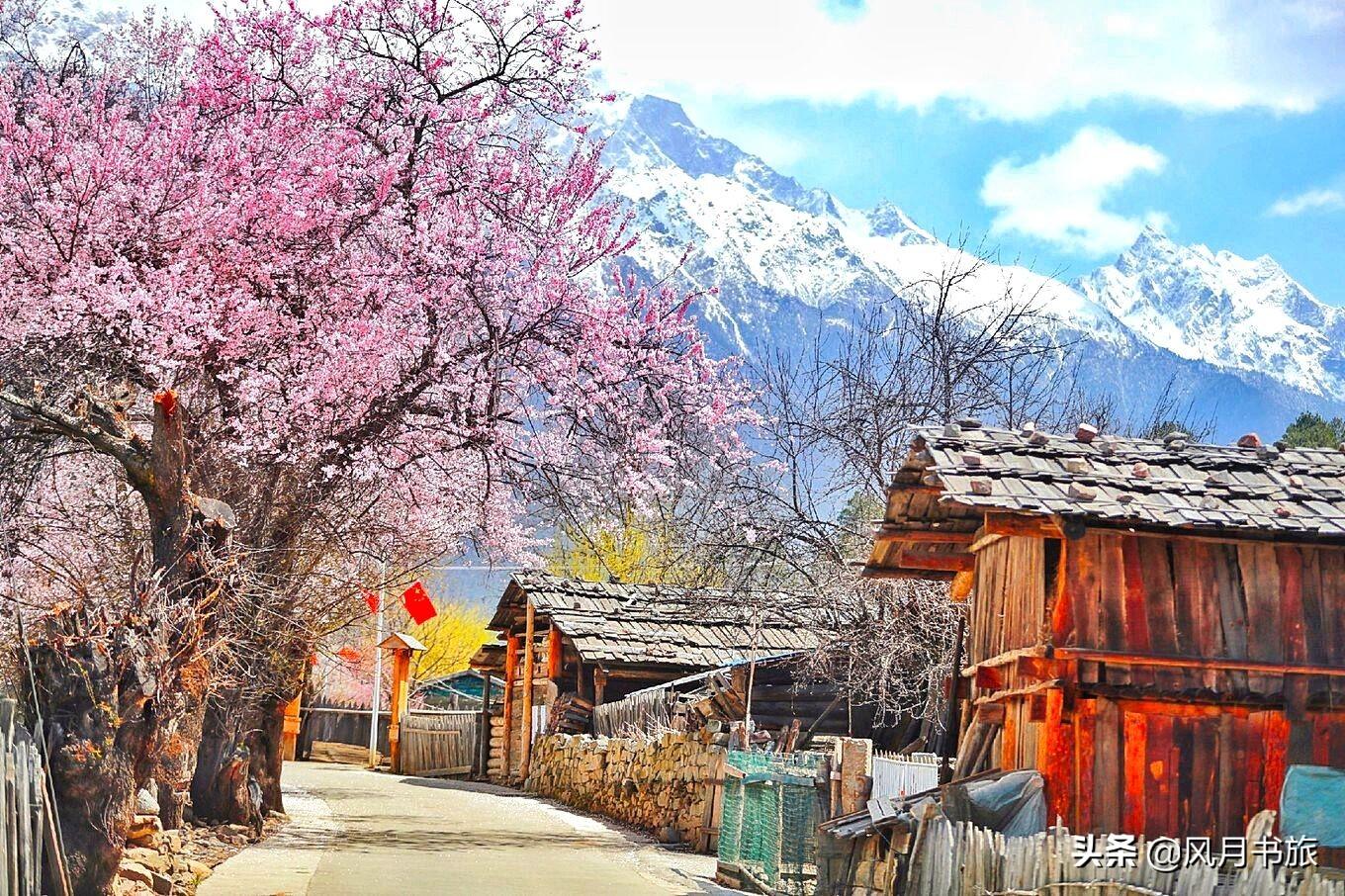 皚皚雪山作背景,蒼翠叢林為映襯,桃花相繼在漫山遍野、河谷路旁、田間地壟、房前屋后綻放,藍天白云之下,雪峰碧湖之畔,冰川森林之間,百年野桃樹,遒勁高大,花開繁茂,花瓣粉嫩似雪,不染世俗紅塵,自帶縷縷仙氣,景色宜人至極。