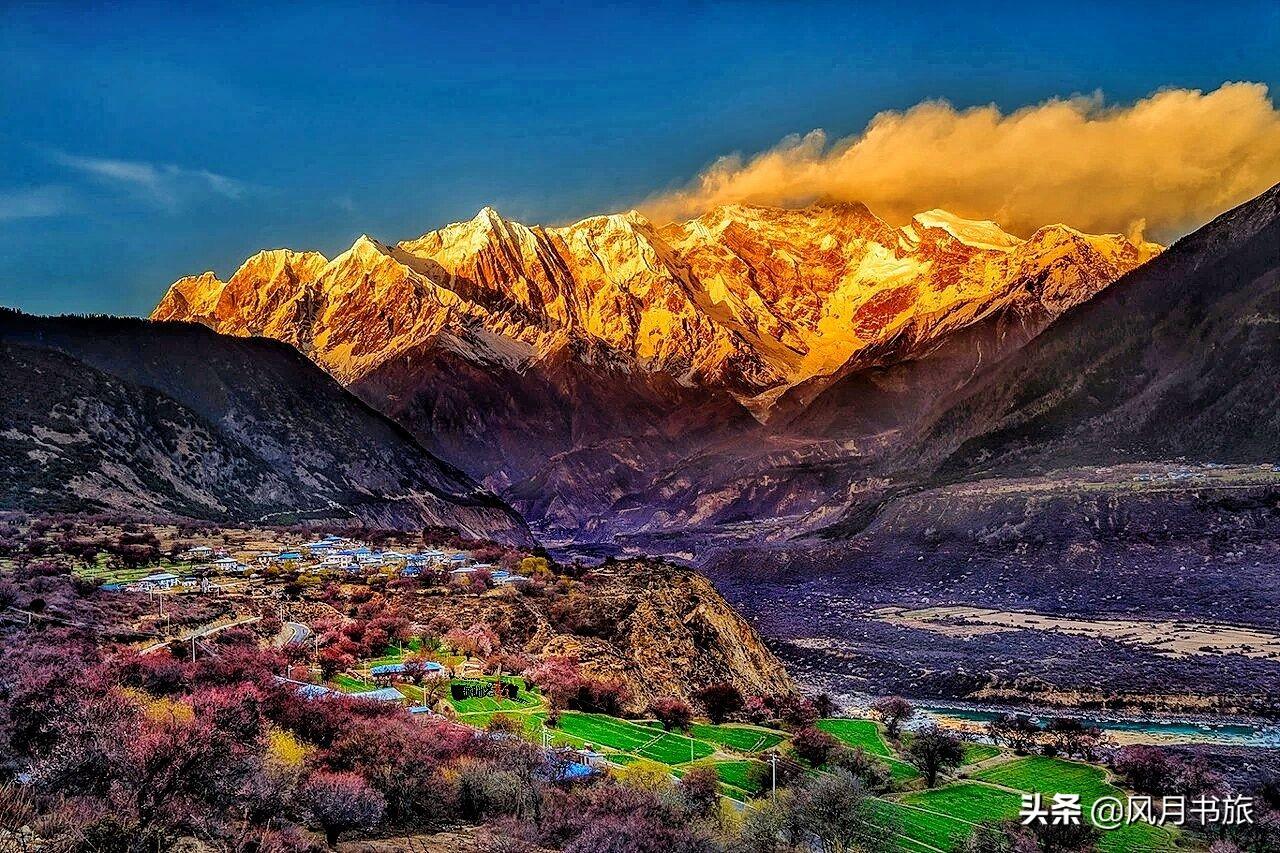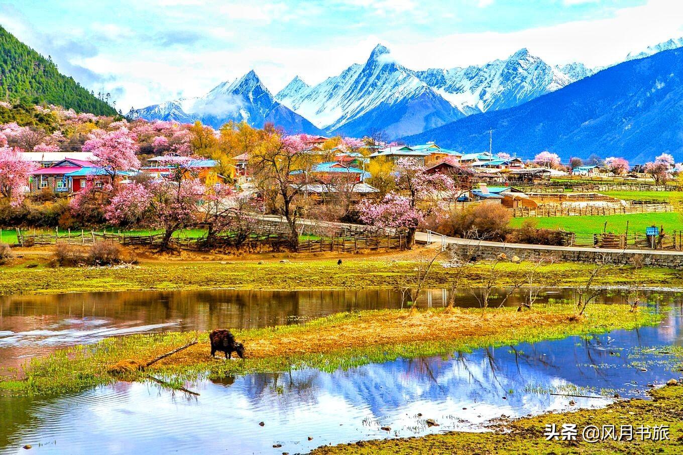 【波密桃花溝】密密麻麻的桃花綿延30多公里,遠處的冰川雪山,近處桃花遮掩下色彩斑斕的藏式房屋,形成一大片浪漫的粉色海洋!