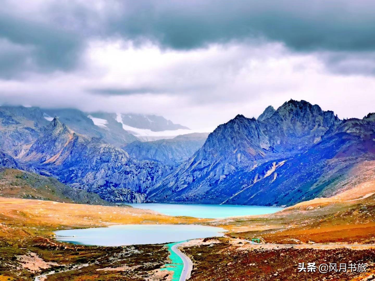 今日沿途群山相依,彎多路急,駛過理塘、海子山,就到了聞名遐邇的姊妹湖,遠遠望去猶如兩顆藍寶石鑲嵌在山間。再往前過了金沙江大橋網(wǎng)紅打卡點,就進入了西藏,傍晚到達川、滇、藏三省交匯處——芒康。