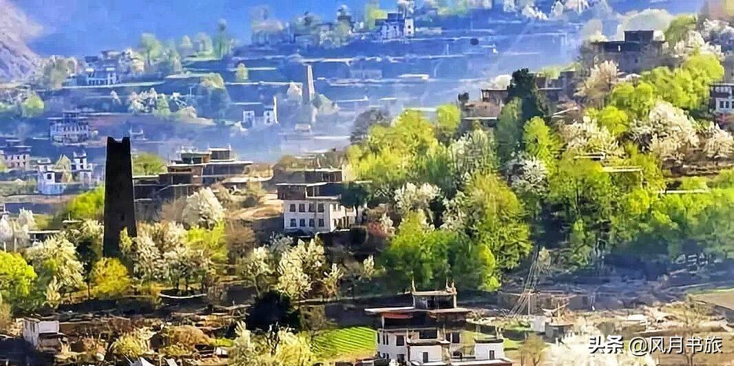 放眼望去,漫山遍野的梨花與藍天、白云、河流、麥地、藏寨、碉樓,共同繪就一幅幅渾然一體的“世外梨源”天開畫圖,彰顯出大金川這處雪域江南的壯闊與秀美。