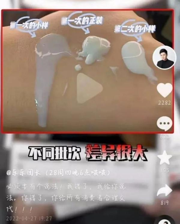 抖音美妝評測博主@樂樂團(tuán)長發(fā)布視頻質(zhì)疑珀萊雅輕享陽光羽感養(yǎng)護(hù)精華防曬液存在防曬力差、不同批次品質(zhì)有較大差異、擅自更改成分含量等問題。