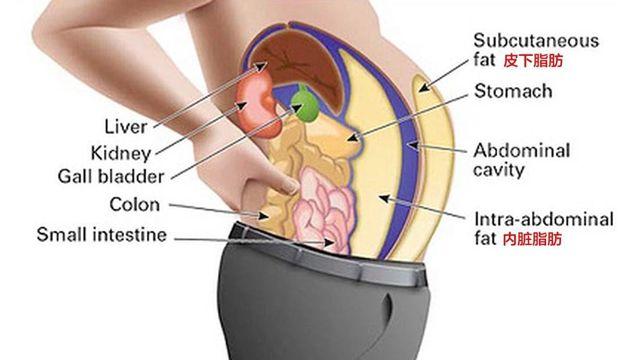 注:人體脂肪分為皮下脂肪和內(nèi)臟脂肪兩種,內(nèi)臟脂肪圍繞著人的臟器,對(duì)健康危害極大,也不容易減掉。