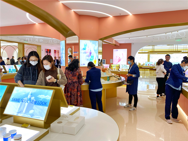 上海一家新開業(yè)的購物廣場內(nèi),來購買化妝品的男性消費者并不多