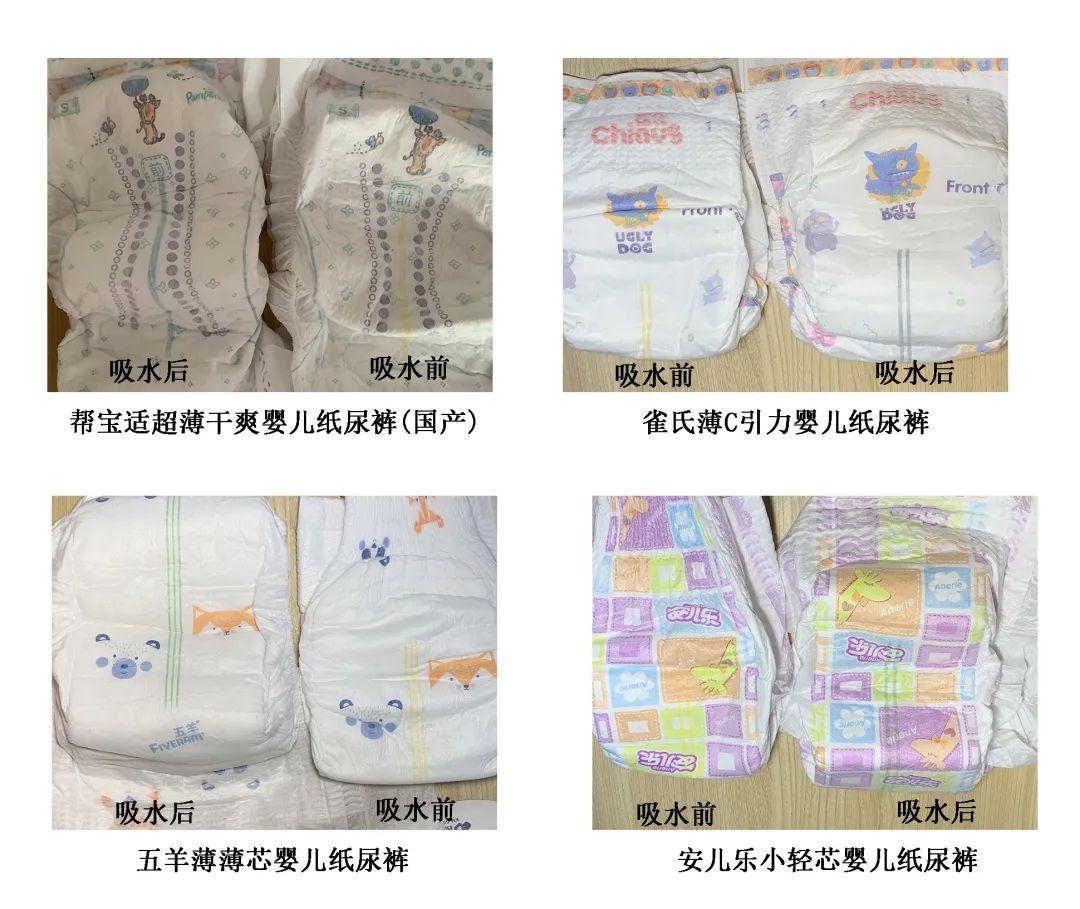 便利性——檢查每款紙尿褲有沒有區(qū)分前后、有沒有尿顯,觀察紙尿褲吸水后尿顯明不。