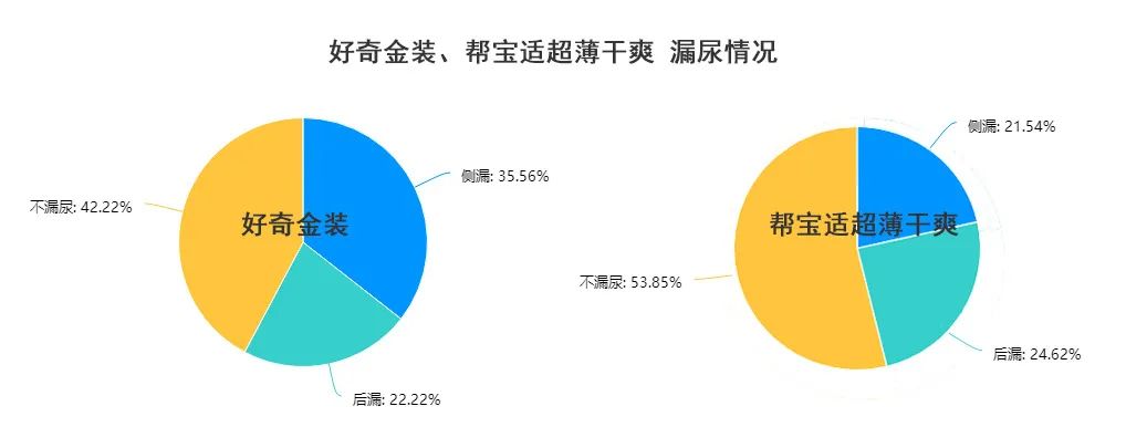 好奇金裝、幫寶適超薄干爽,得分倒數(shù),近4成寶媽反映出現(xiàn)過側(cè)漏/后漏,漏尿情況不盡如人意。