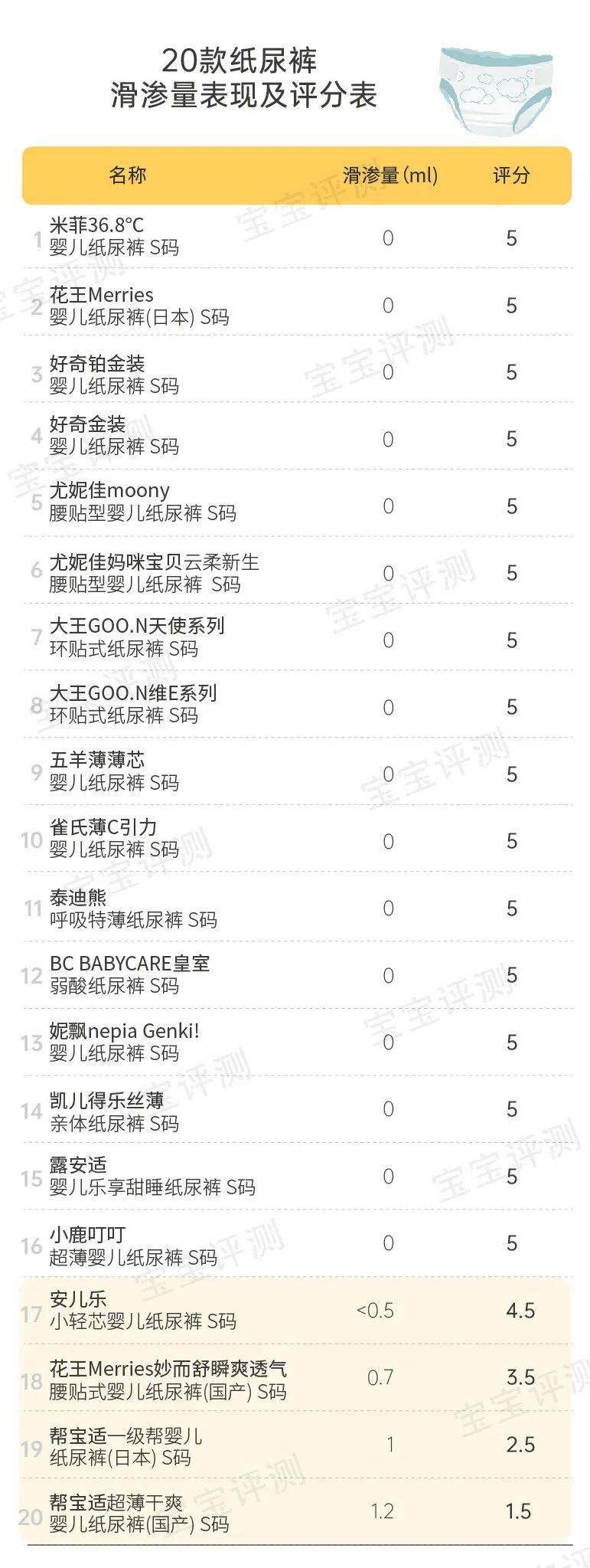 ③其他16款紙尿褲三次測試均未出現(xiàn)滑滲。
