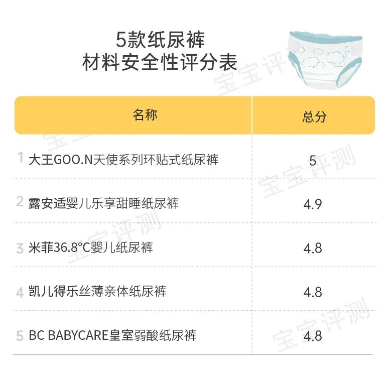 根據(jù)檢測結(jié)果,5款紙尿褲的性評分如下: