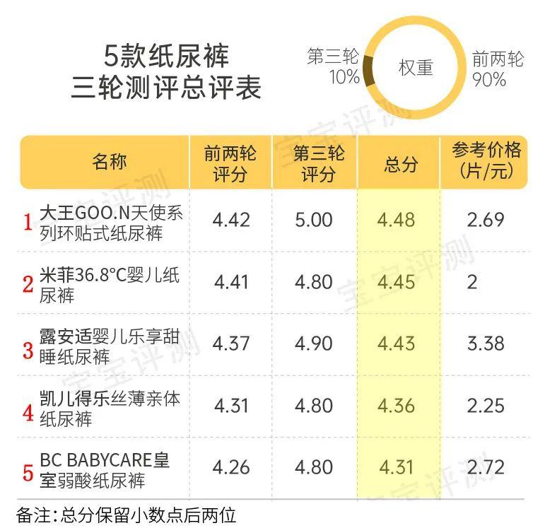 綜合推薦綜合使用性能測評、寶媽使用體驗評價、性檢測,5款紙尿褲的終評分及排名情況如下: