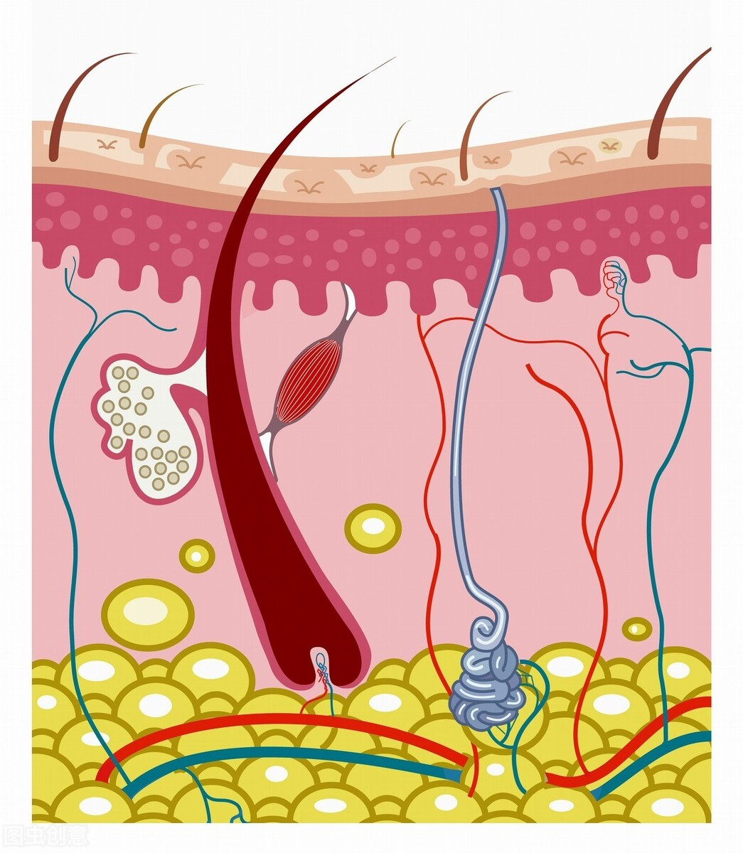 人的肌膚就像三明治一樣,其實有很多層,簡單的模型可以參考如下。