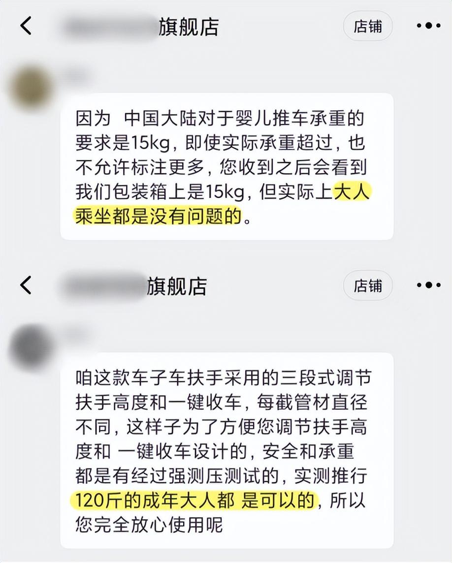 8款推車(chē)標(biāo)注的承重均為15kg,但是各自的客服表示——可不止這樣哦!
