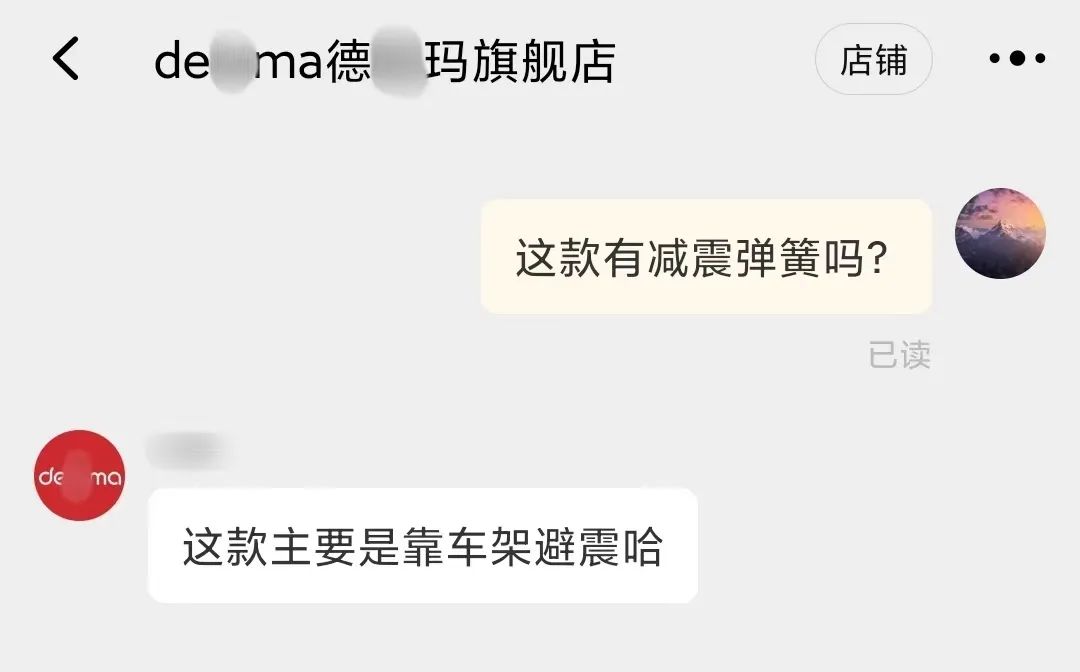 詢問(wèn)它家客服,表示——我們這款主要是靠車(chē)架避震!