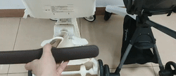 De**Mom和述W,前腳踏可以調(diào)節(jié),前輪可調(diào)節(jié)為定向,但一直走直路一點(diǎn)都不需要左右調(diào)整,在實(shí)際使用中很少發(fā)生,這個(gè)設(shè)計(jì)似乎有些雞肋。而且這2款靠背不太結(jié)實(shí)穩(wěn)固,調(diào)節(jié)遮陽(yáng)篷時(shí)車(chē)身都在搖晃。