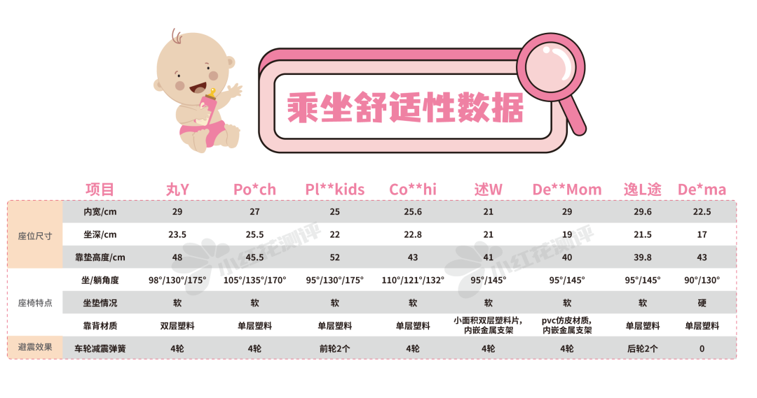 花爸在這里選擇了座椅尺寸、座椅特點(diǎn)、車(chē)身材質(zhì)和避震效果這四個(gè)方面進(jìn)行測(cè)評(píng)。
