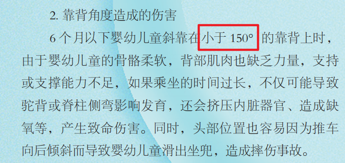 嬰幼兒的骨骼柔軟,背部肌肉缺乏力量,6個(gè)月以下嬰幼兒斜靠在小于 150°的靠背上時(shí),若乘坐的時(shí)間過(guò)長(zhǎng),不僅可能導(dǎo)致駝背或脊柱側(cè)彎影響發(fā)育,還會(huì)擠壓內(nèi)臟器官、造成缺氧等,產(chǎn)生致命傷害。