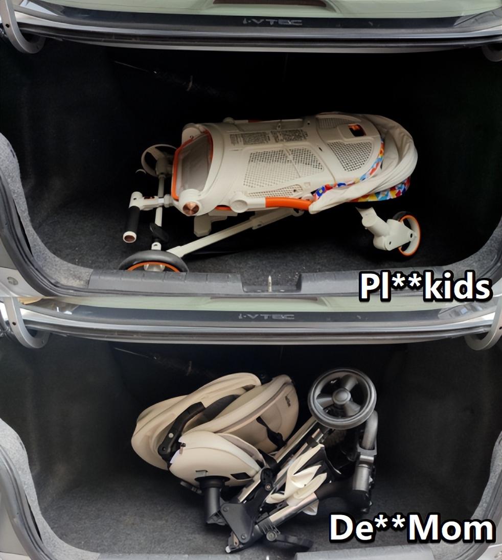 Pl**kids、丸Y是便利的,其次是逸L途,基本把遮陽(yáng)篷一拉、座椅一放、拉桿一推一撞就可完成收車(chē),不用拆卸遮陽(yáng)篷、解開(kāi)防護(hù)架等。收納好之后,8款遛娃神器都可以放進(jìn)后備箱,也都可以通過(guò)地鐵閘機(jī)哦~