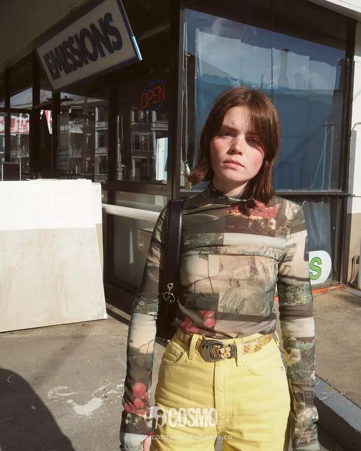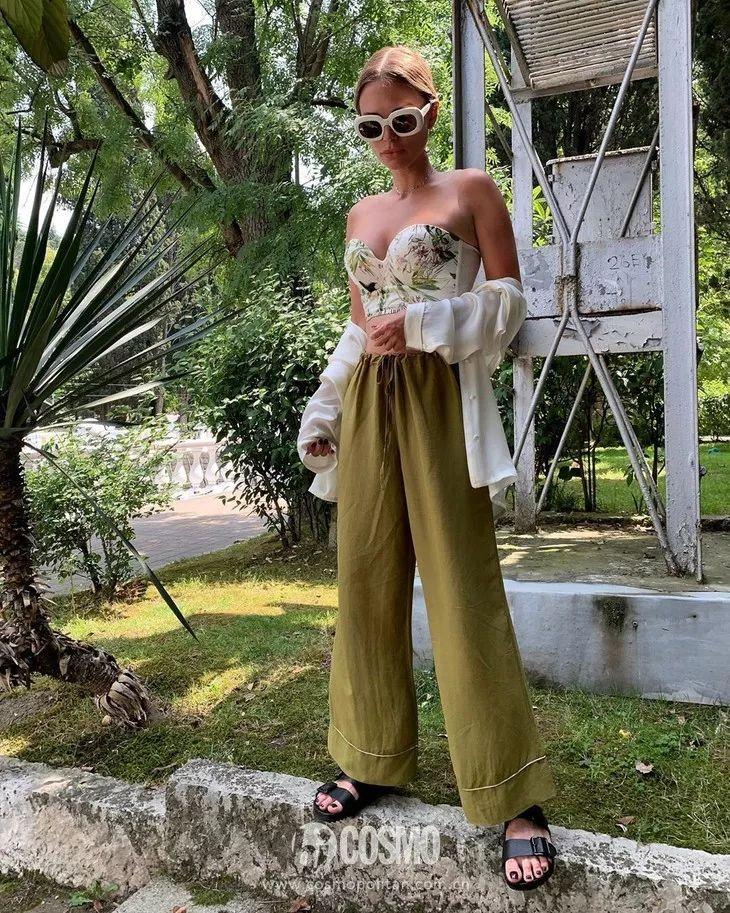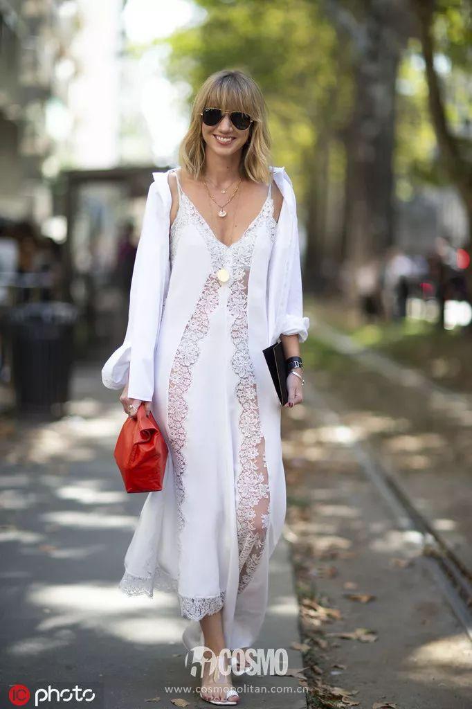 如果覺得上面這種面料還是熱,不妨選擇透視內(nèi)搭。面料更透氣,皮膚隱約可見,透著夏天的小性感。透視款更多的是帶有印花的彩色,給悶熱的夏季帶來清爽,穿搭也變得更有趣味感。