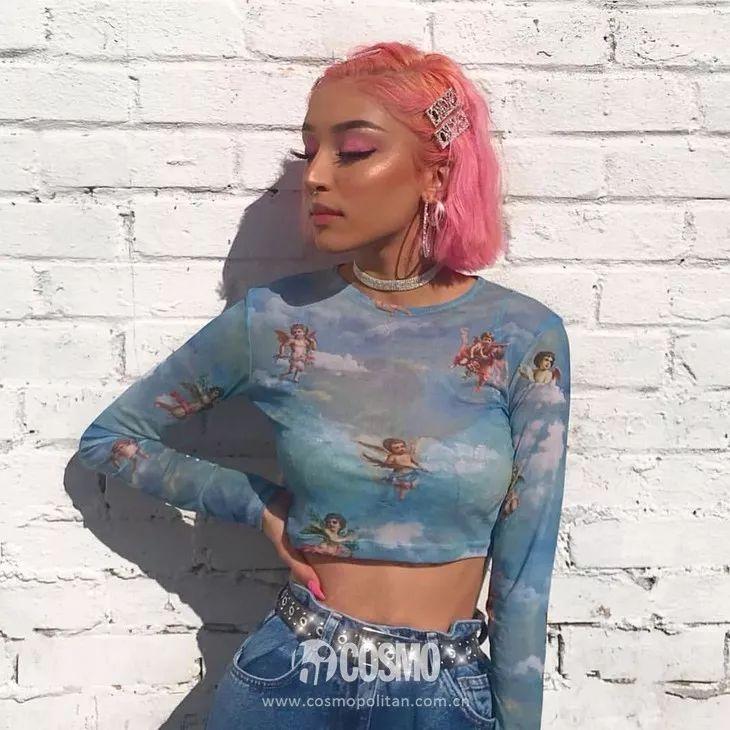來自英國的Motelrocks,屬于Instagram brand。整體風(fēng)格偏向美式復(fù)古,衣服大多都是露臍緊身,深受年輕博主們的喜愛。經(jīng)典的藍(lán)色透視上衣配上小天使的印花,俏皮又性感。