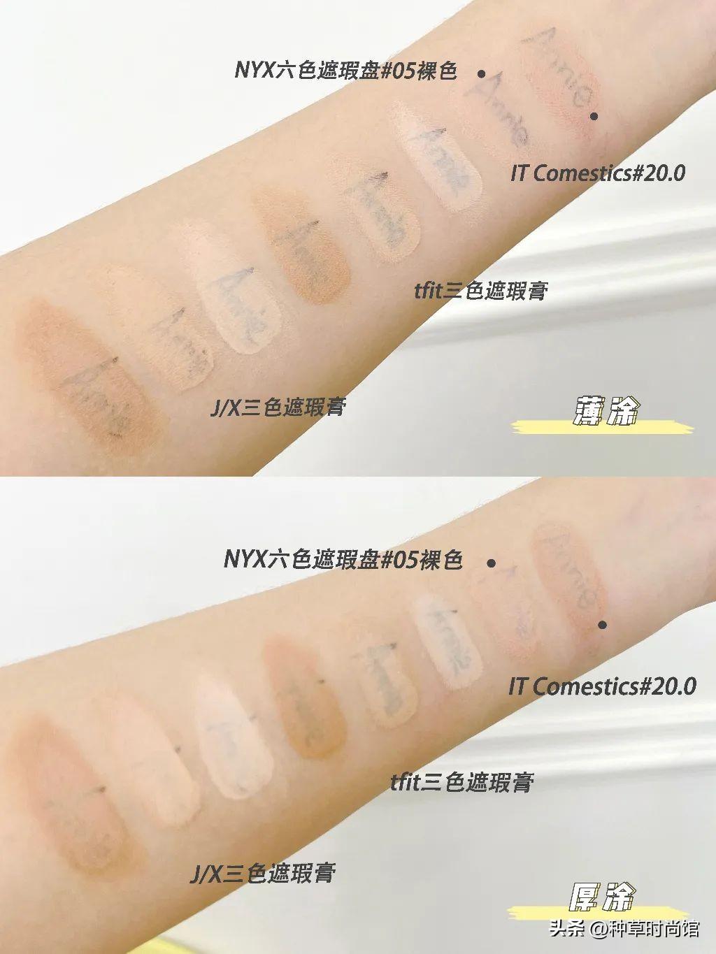 所以對比下來,J/X三色遮瑕膏的遮瑕力度強(qiáng),IT Comestics第二。