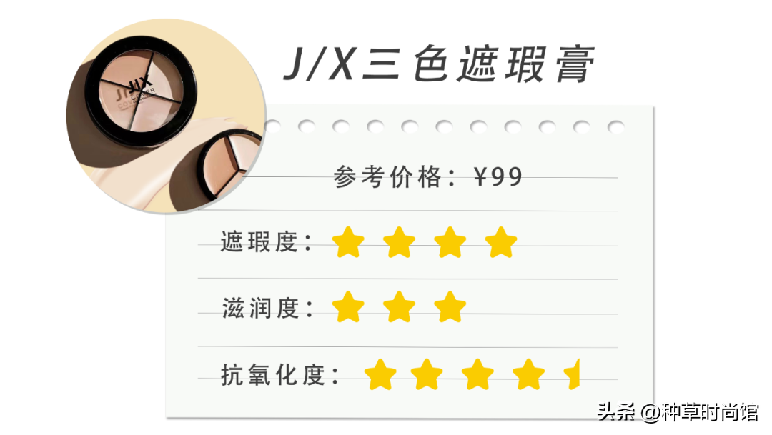 雖然是遮瑕膏,但J/X三色遮瑕一點(diǎn)也不干,奶油質(zhì)地上臉粉感也不重。