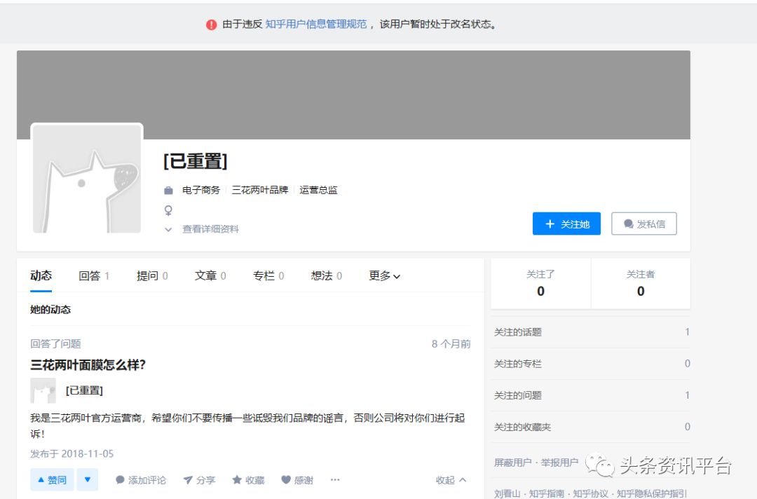 然而,截止目前,那位網(wǎng)友仍然沒有把答案刪除,反而是這位在個(gè)人簡介中寫到“三花兩葉品牌運(yùn)營總監(jiān)”的用戶,由于違反知乎用戶信息管理規(guī)范,暫時(shí)處于改名狀態(tài)。 另外,對(duì)于“三花兩葉”這個(gè)品牌名,也有其他微商品牌的代理商表示它們是盜版“三草兩木”的名字,各中見解,眾說紛紜。 在售價(jià)方面,我們知道三花兩葉的產(chǎn)品標(biāo)價(jià)也是99元三盒,但目前在淘寶上,我們搜索關(guān)鍵詞可以看到,有商家以99元6盒、66元3盒的價(jià)格進(jìn)行售賣。由此推斷,公司旗下產(chǎn)品在售賣過程中可能存在擾亂市場(chǎng)秩序的亂價(jià)現(xiàn)象。