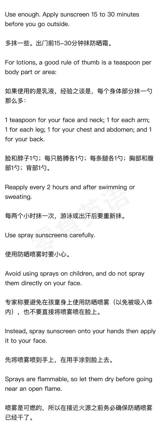 若你用SPF 15的防曬霜,就可以你在150分鐘內(nèi)(15x10分鐘)不被曬黑。