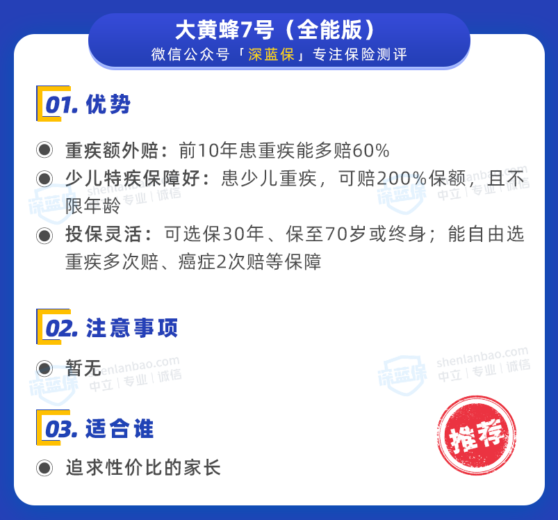 ①大黃蜂7號(hào)(全能版):少兒特疾保障好