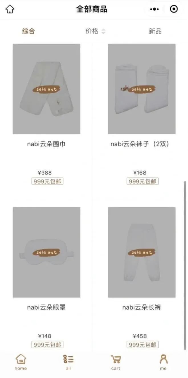 988元一件浴袍,148元一副眼罩,168元兩雙襪子。