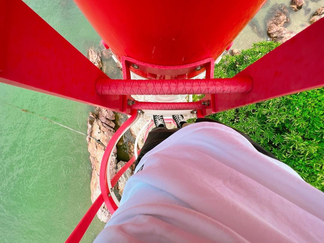 這周圍高的建筑,或許是村民5層樓高的自建房,因此,登高瞭望的機(jī)會(huì)怎能錯(cuò)過(guò)!我一手一腳小心翼翼地攀上燈塔,海陵島的美景盡收眼底。只不過(guò),微風(fēng)輕拂加上我的體重,讓燈塔頂部有些許晃動(dòng),要不是晃這幾下,陽(yáng)江的美景差點(diǎn)兒讓我忘了自己恐高。
