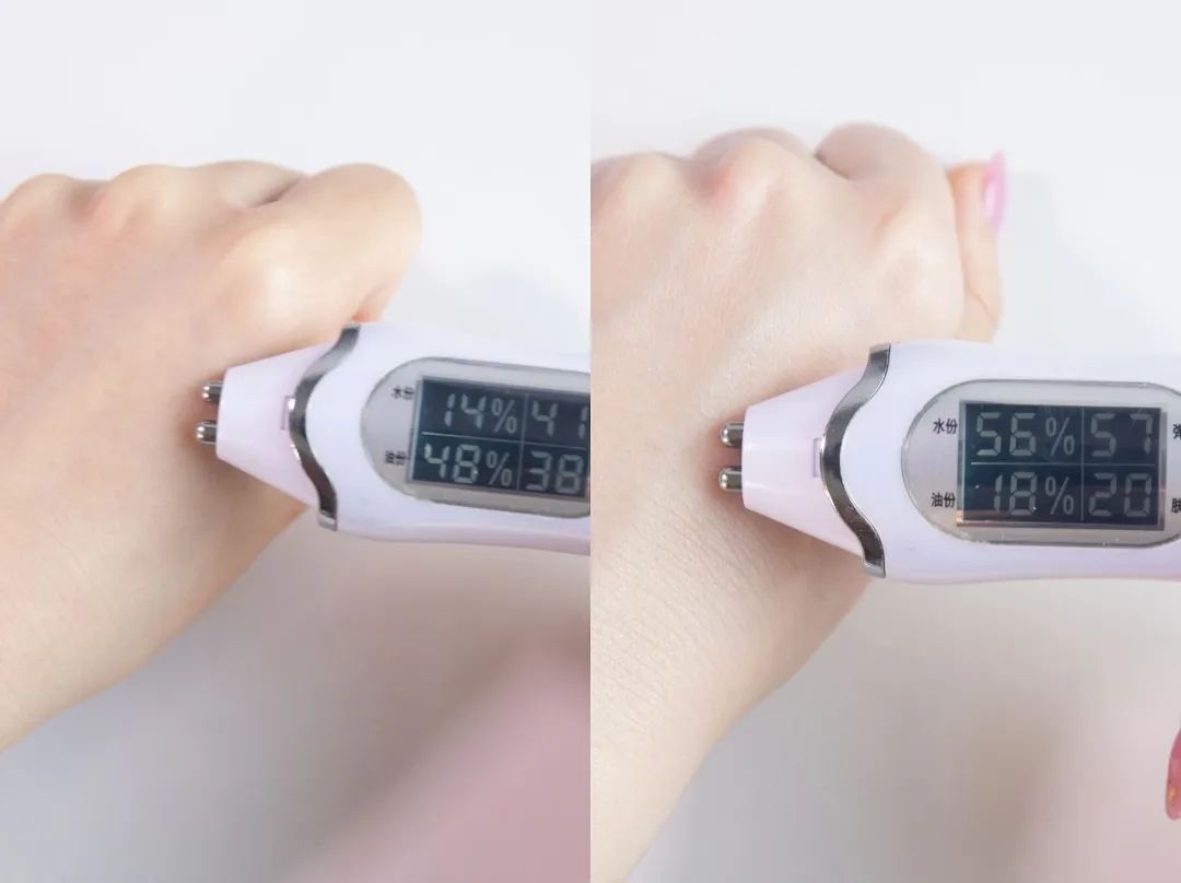 因為成分里添加了豐富的玻尿酸,帶妝一整天不會拔干,皮膚水潤又透亮。