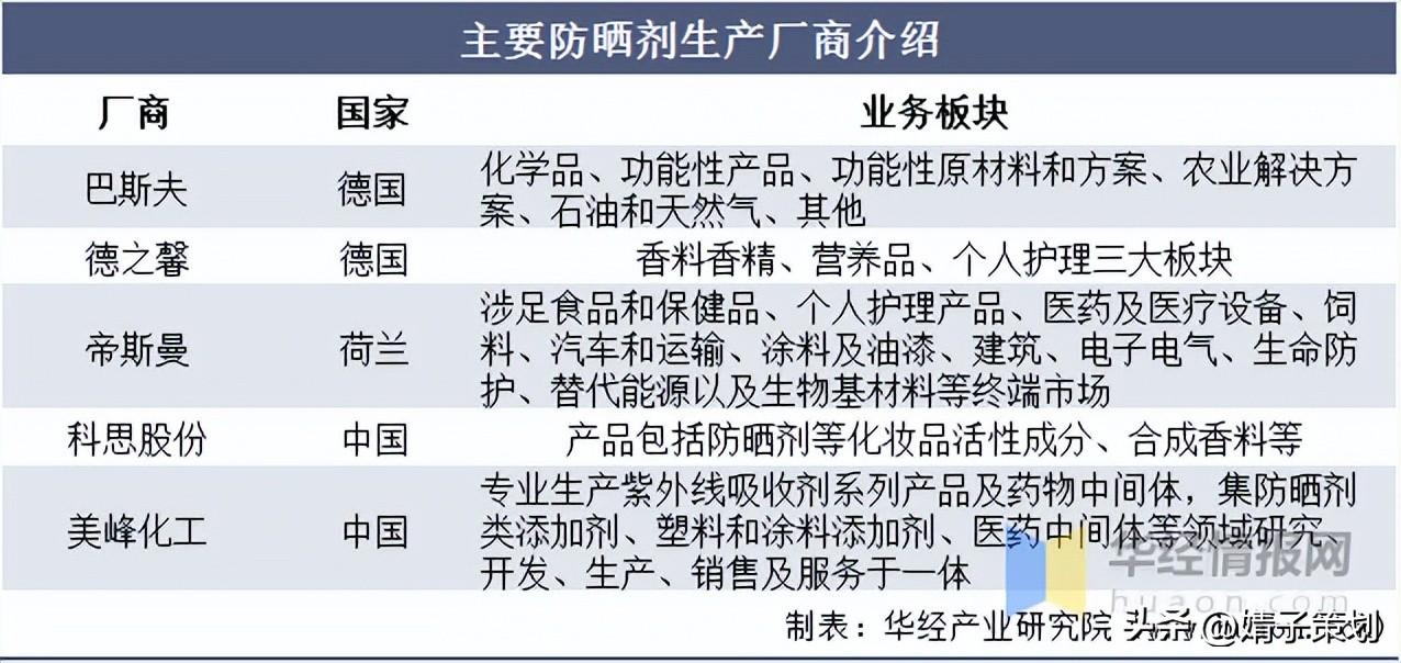 主要防曬劑生產(chǎn)廠商介紹