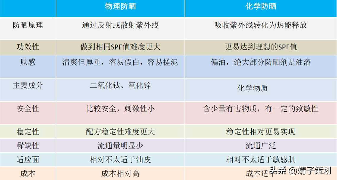 物理防曬與化學(xué)防曬特點(diǎn)比對