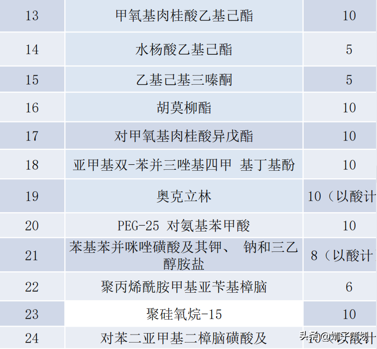 4.2防曬劑介紹以及濃度限值
