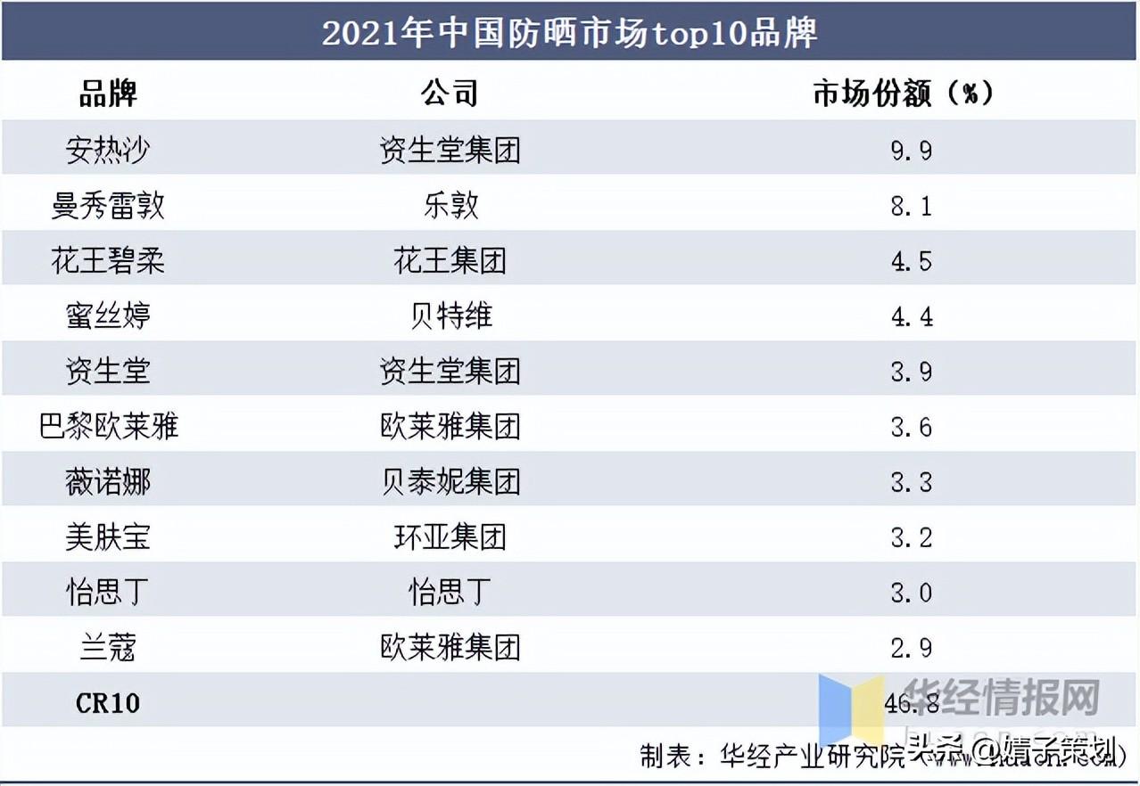 2021年中國防曬市場top10品牌