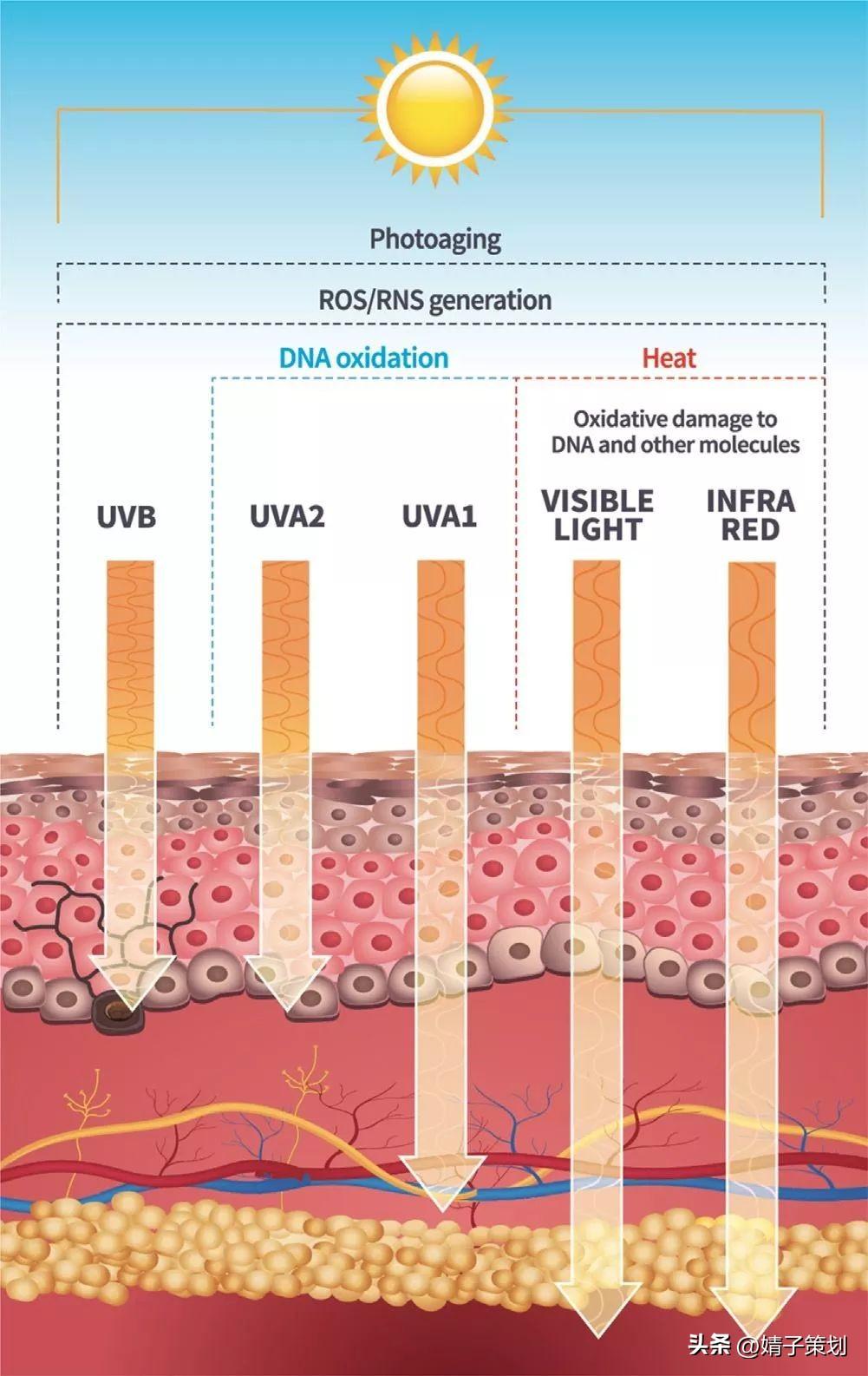 自然界到達(dá)人體肌膚光線帶來的損傷;整體波段日光對肌膚滲透與損害小結(jié):