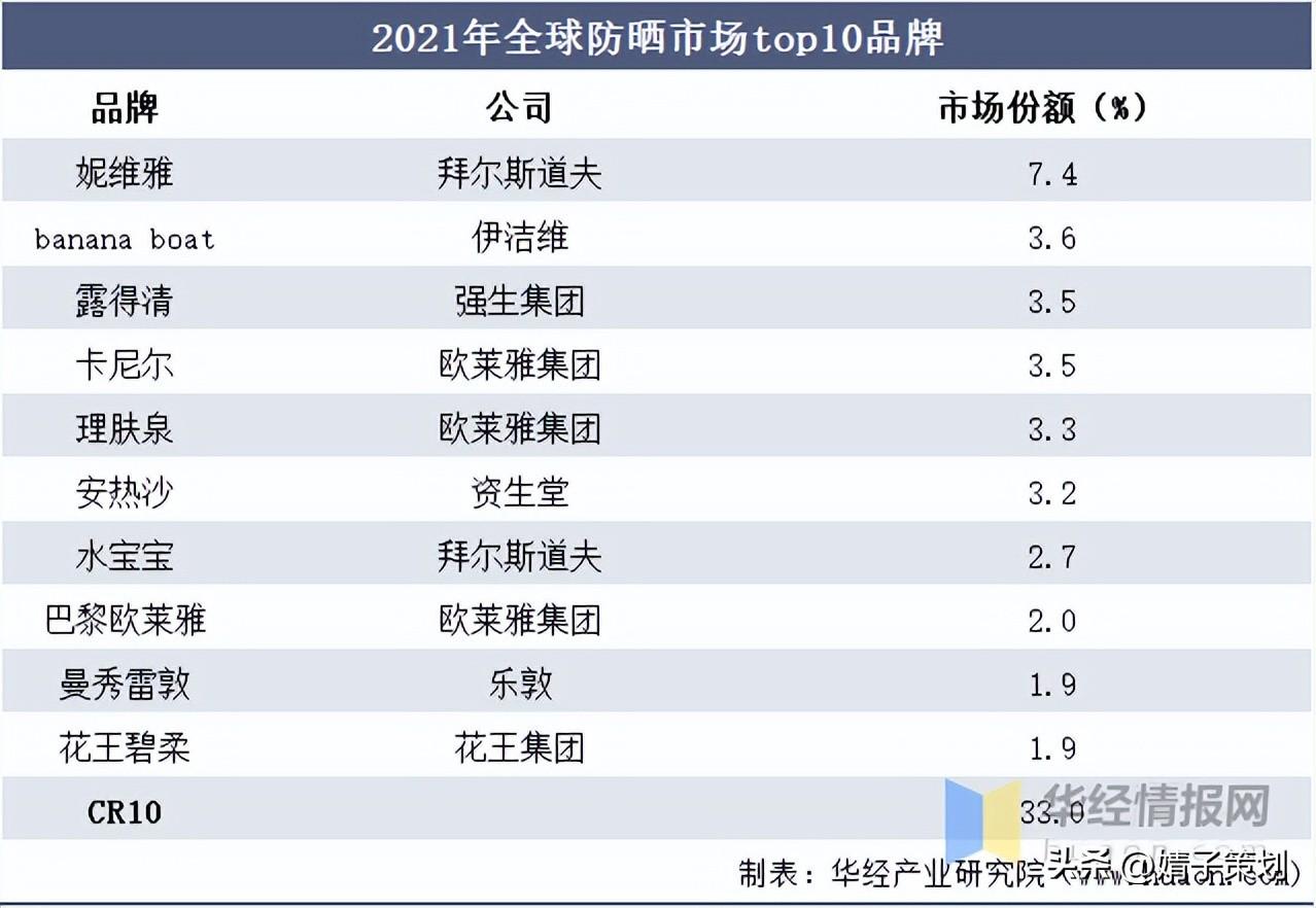 2021年防曬市場top10品牌