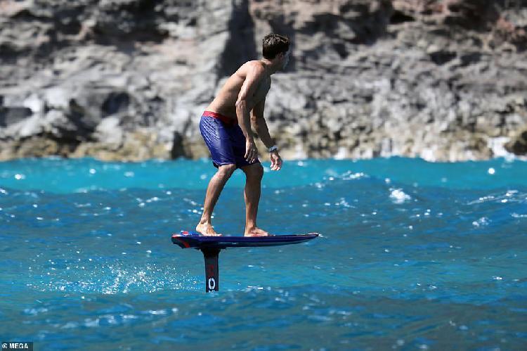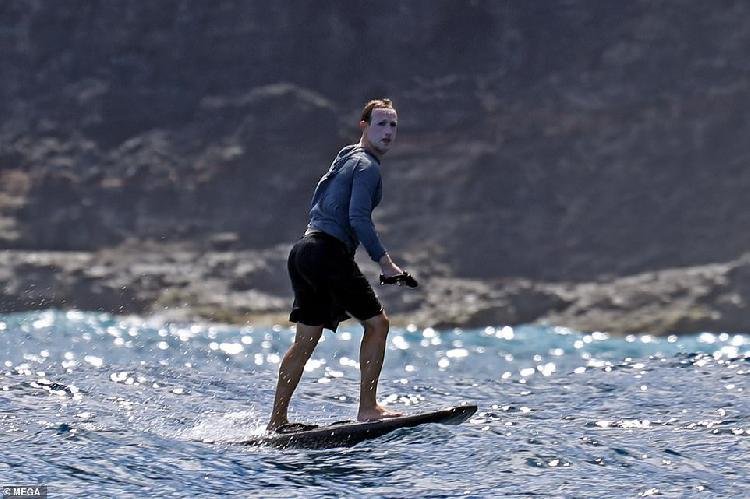 照片顯示,扎克伯格踩著價值12000美元的電動沖浪板,在職業(yè)沖浪手凱·蘭尼身旁來回移動。而他的安保人員在離他不遠(yuǎn)的一艘小船上待命。