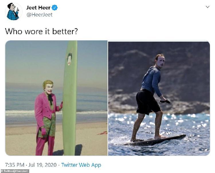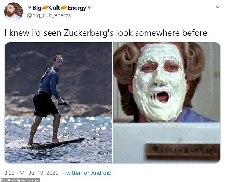 據(jù)英國《每日郵報》20日報道,美國社交服務(wù)網(wǎng)站臉書(Facebook)執(zhí)行官(CEO)馬克·扎克伯格近日來到夏威夷沖浪。因他臉上涂著厚厚的防曬霜,并穿著藍(lán)色連帽衫防曬,網(wǎng)友笑稱其預(yù)防措施太極端,并暗指其像“小丑”,還有記者直呼“太驚悚”。
