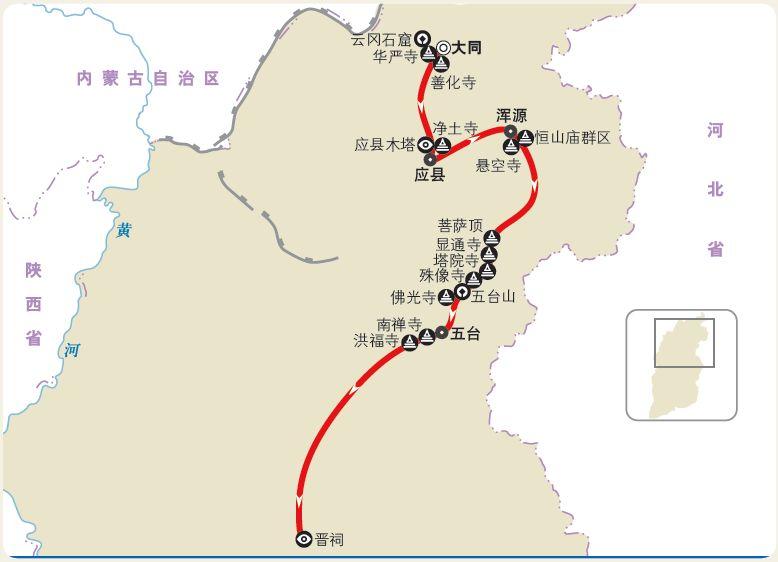 20世紀(jì)30年代,梁思成與林徽因在晉北對古建筑進(jìn)行田野考察,發(fā)現(xiàn)了唐構(gòu)建筑佛光寺。以下這條經(jīng)典古建線路,能讓你在有限的時間內(nèi)看到山西的古建精華。