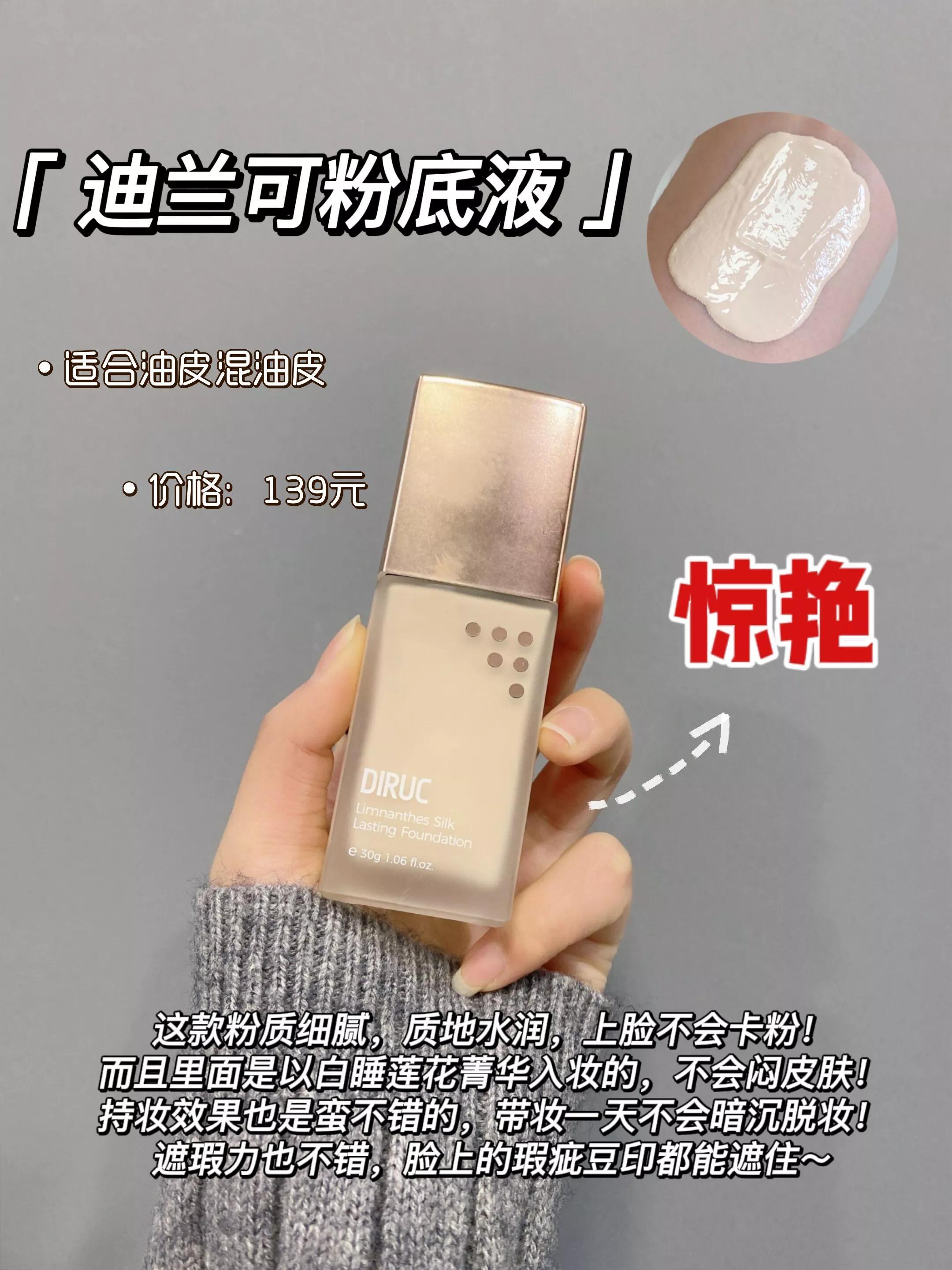 迪蘭可粉底液:這款膚色暗黃的想要白一點(diǎn)的可以選擇白的色號(hào),上臉顯得膚色好,氣色好!