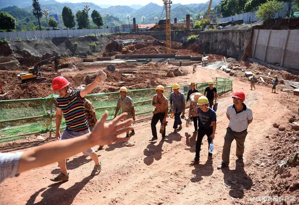 因?yàn)閷?shí)在太熱了,工地的工人們上午10點(diǎn)就下班了。