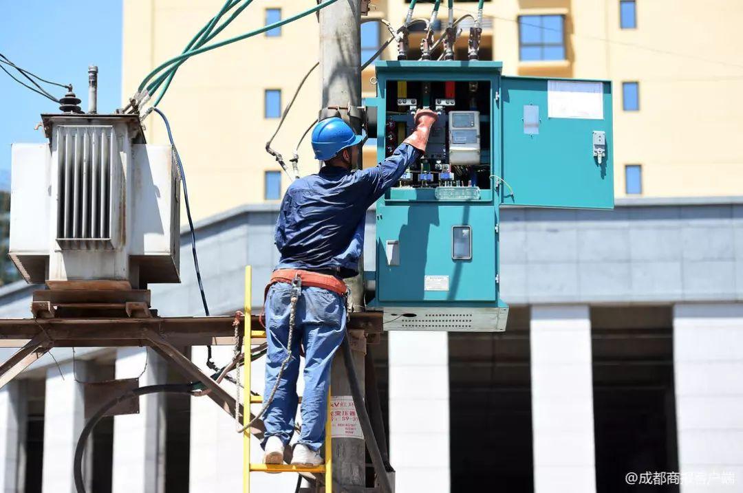 登桿檢修的電力工人衣服已經(jīng)濕透,可以擰出水來(lái)↓