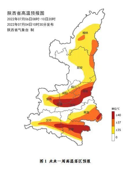 7日:全省多云間晴天。陜北部分地方、關(guān)中盆地大部分地方、陜南漢江沿線有35~37℃的高溫天氣,榆林西部、關(guān)中部分地方38~40℃、局地可達(dá)41~43℃以上。