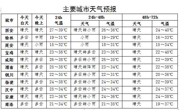6日:全省晴天間多云。關(guān)中、陜南東有35℃以上高溫,關(guān)中南部、陜南東部局地可達(dá)38~40℃。