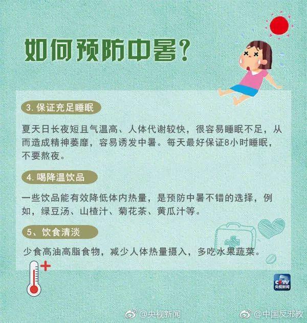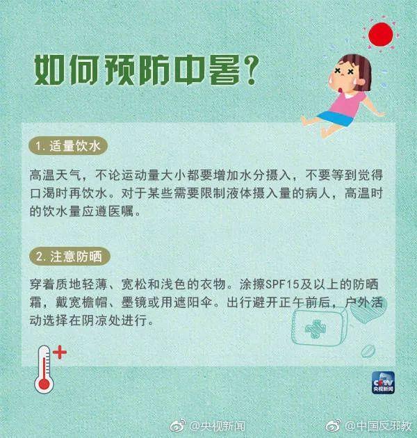 4.公眾做好高溫?zé)崂说膽?yīng)對。建議公眾做好防暑降溫準(zhǔn)備,盡量避免午后高溫時段的戶外活動并做好防曬防暑并及時補充水分。室內(nèi)和長時間駕車注意通風(fēng)換氣防范空調(diào)病,戶外或者高溫條件下的作業(yè)人員應(yīng)當(dāng)采取必要的防護措施。關(guān)注重點人群防暑工作,落實對困難家庭、養(yǎng)老院等特殊場所和群體的防暑降溫工作,關(guān)注心腦血管疾病患者防暑降溫;做好中小學(xué)生的教育和監(jiān)護,防止溺水事件發(fā)生;持續(xù)高溫天氣導(dǎo)致不穩(wěn)定能量迅速積累,極易觸發(fā)局地強對流天氣,需關(guān)注當(dāng)?shù)仡A(yù)警信息。