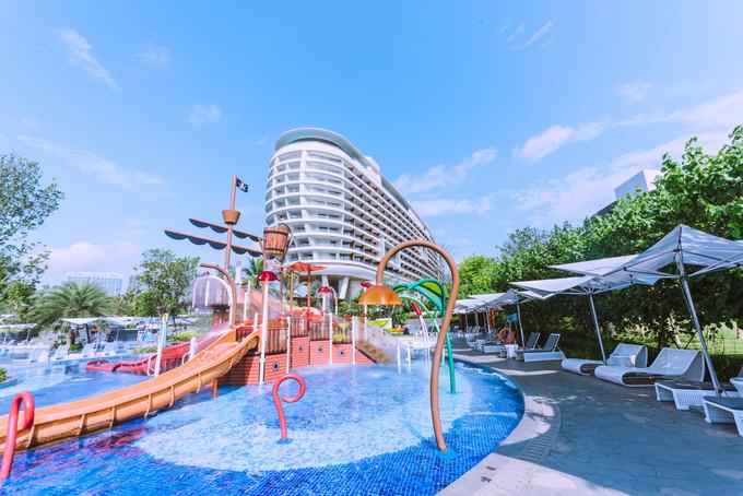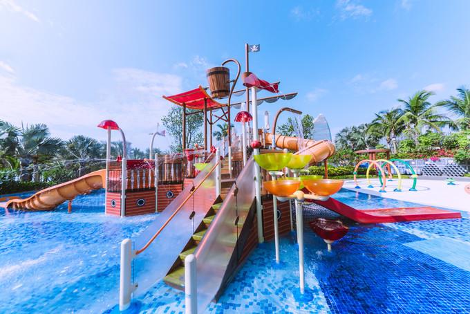酒店泳池這個(gè)水上樂(lè)園也是小朋友們的愛(ài),還有給小朋友們免費(fèi)提供的小火車(chē),挖沙工具,救生衣,小船都可以隨便玩